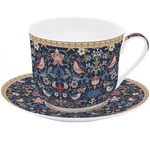 Filiżanka ze spodkiem granat czerwone ptaszki 400ml
