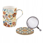 Kubek z zaparzaczem żółto-niebiesko-bordowe kwiaty 350ml