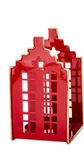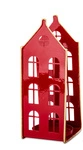 Świecznik metalowy domek czerwony 2-piętrowy na t-light złote ranty 23 cm