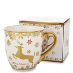 Kubek ceramiczny beczułka biały złoty renifer 560ml