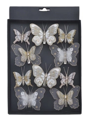 Motyl na klipsie 10sztuk biało-złoty 5-8cm w pudełku