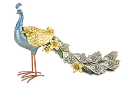 Ptak ceramiczny brązowo-żółty z parasolem/laską/lornetką 12,5 cm 1 sztuka