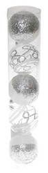 Bombki czerwone brokatowe z białymi gałązkami i srebrnymi cyrkoniami 8 cm 6 sztuk