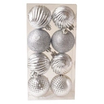 Bombki 8szt 6cm w prążki/ brokat/ pikow. srebrne