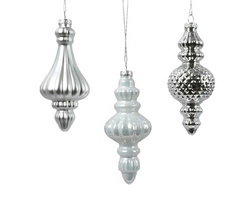 Bombka szklana 1sztuka tralka ornament srebrna 15 cm 3 wzory