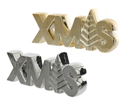 Napis ceramiczny złoty lub srebrny XMAS z choinką 21x9cm