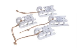 Zawieszka drewniana białe sanki 4sztuki jutowe sznurki