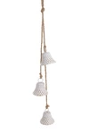 Dzwonki metalowe białe przycierane 3 sztuki na jutowym sznurze 57 cm