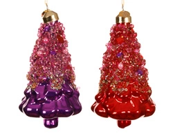Bombka szklana 1sztuka Choinka fiolet/czerwona 12cm