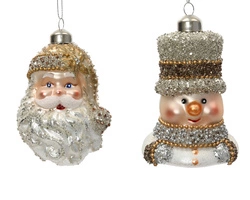Bombka szklana 1sztuka Głowa Mikołaja/Bałwana 2wzory 11cm