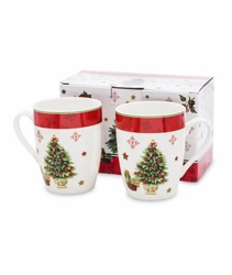 Kubki 2sztuki Choinki z prezentami biało/czerwone pudełko 360ml