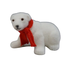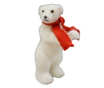 Niedźwiedź aksamitny biały stojący w czerwonym szaliku 19 cm