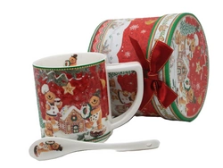 Kubek Ciastek przy domku z piernika czerwony z łyżeczką w pudełku 300ml