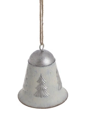 Zawieszka Dzwon metal biały srebrne choinki 8cm