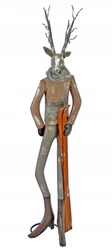 Renifer metalowy srebrny z pomarańczowymi nartami 77,5 cm