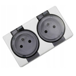 Gniazdo podwójne z uziemieniem białe klapka Karlik Senior