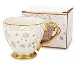 Filiżanka ceramiczna biała 380ml płatki śniegu, bombki, złote ucho
