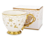 Filiżanka ceramiczna biała 380ml złote renifery, śnieżynki, złote ucho