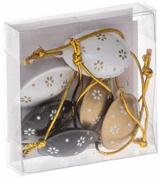 3 zawieszki jajka 5cm złote, czarne, białe w pasy