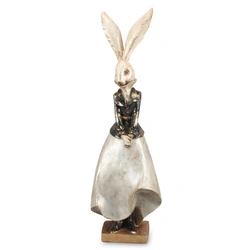 Figurka Królik ONA biało-czarna suknia przycierana złotem 46,5cm