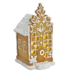 Domek z piernika LED jasny brąz biały dach i podstawka 20 cm