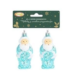 Bombki czerwone brokatowe Mikołaj w saniach 7 cm 6 sztuk