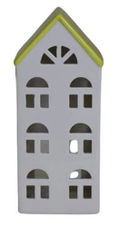 Domek T-light ceramiczny biały z żółtym dachem lampion świecznik 21cm