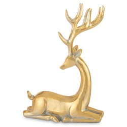 Jeleń złoty leżący przycierany głowa do tyłu 25,5x18,5cm