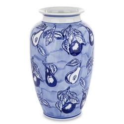 Wazon ceramiczny niebiesko-biały jabłka/gruszki 26,5 cm