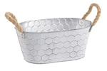 Osłonka metalowa srebrna wanienka plastry miodu z jutowymi uszami 11 cm