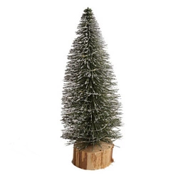 Choinka szczotka LED ośnieżona, drewniana podstawa 25cm