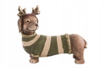 Jamnik ceramiczny brązowy, zielony sweterek, złote rogi 34 x 40cm