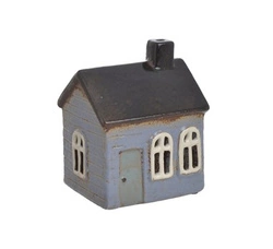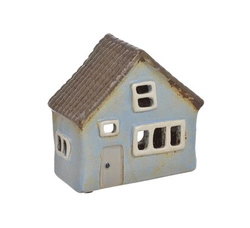 Domek Holenderski na T-light niebieski, brązowy dach lampion świecznik 12 cm