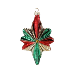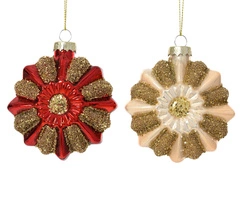 Bombka szklana 1sztuka Kwiat czerwony/złoty brokat 8cm