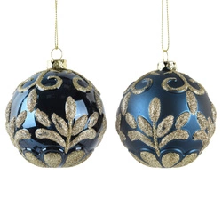 Bombka 1 sztuka 8cm granatowa złoty wzór połysk/mat 2wzory