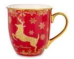 Kubek ceramiczny czerwony 560ml złoty renifer złote ucho