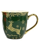 Kubek ceramiczny zielony 560ml złoty renifer złote ucho