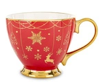 Filiżanka ceramiczna czerwona 380ml złote renifery, na stopce