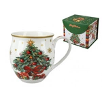 Kubek świąteczny w pudełku beczułka z choinką Carmani 450ml