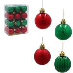 Bombki 24sztuki 4cm czerwone połysk/matowe zielone plisowane/nakrapiane