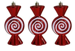 Bombki cukierki płaskie 3 sztuki czerwono-białe 12,5 cm