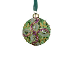 Bombka szklana 3sztuki 8cm zielona, złoty kwiat fiolet koraliki transparentna
