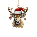 Zawieszka metalowa płaska głowa renifera w świątecznej czapce 10,5 cm