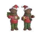Miś brąz stojący czerwony sweter i czapka mikołaja, złote serce/gwiazda w ręku 13cm 1 sztuka