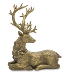Jeleń złoty leżący przecierany z głową do tyłu 37x32cm