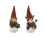 Bałwan/Mikołaj ceramiczny LED z prezentem/choinką, szara czapa 18cm