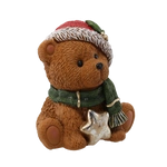 Miś ceramiczny LED brąz siedzący ze złotą gwiazdką, zielony szalik 30cm