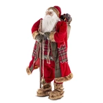 Mikołaj czerwony rękawy szkocka krata z nartami i workiem gałązki świerkowe 120 cm