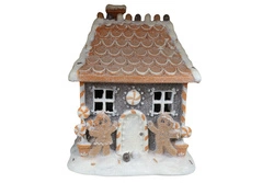 Domek LED z piernika szary z brązowym dachem i dwoma ciastkami 22 cm