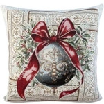 BN Poszewka 40x40cm Chenille Wieniec, bombki, czerwona kokarda